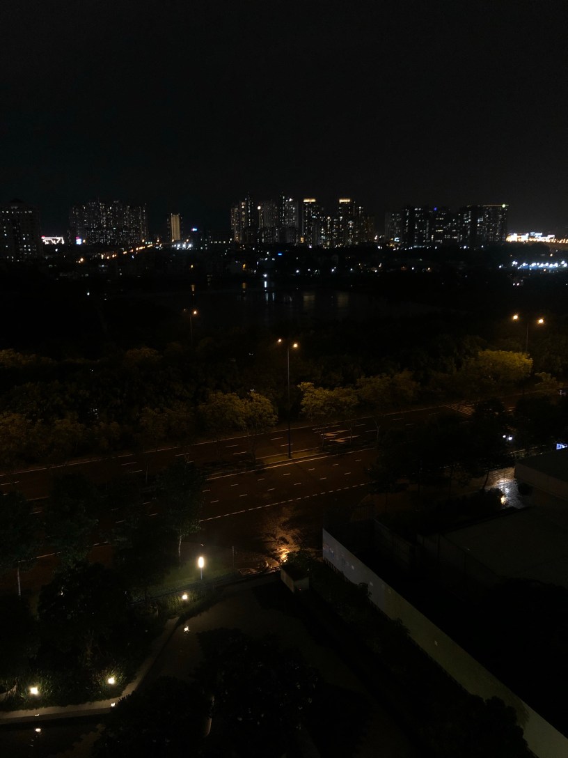 Những đêm mưa rào rạc, tôi kê ghế ra ban công ngồi nhìn xuống con đường, vẫn có những bóng xe vụt qua. Nhưng khung cảnh tạo cảm giác như trong các phim thảm hoạ thì chỉ có những chiếc xe cứu thương sơn trắng, đèn đỏ nhấp nháy, còi xe dồn dập vang dài mới đáng kể. Xe vừa chạy vừa hụ còi, tôi thì ngồi im một chỗ, màng nhĩ sẽ đón nhận những rung động trong không khí từ các góc độ khác nhau. Vậy là tôi nghe miết cũng quen, biết tiếng còi này tới từ bên trái hay bên phải, xe này chở người bệnh từ lối nào, nhà họ có thể ở đâu, xe còn đang ở xa hay đã tới gần nhà tôi nhất, chỉ cách chừng vài chục mét.