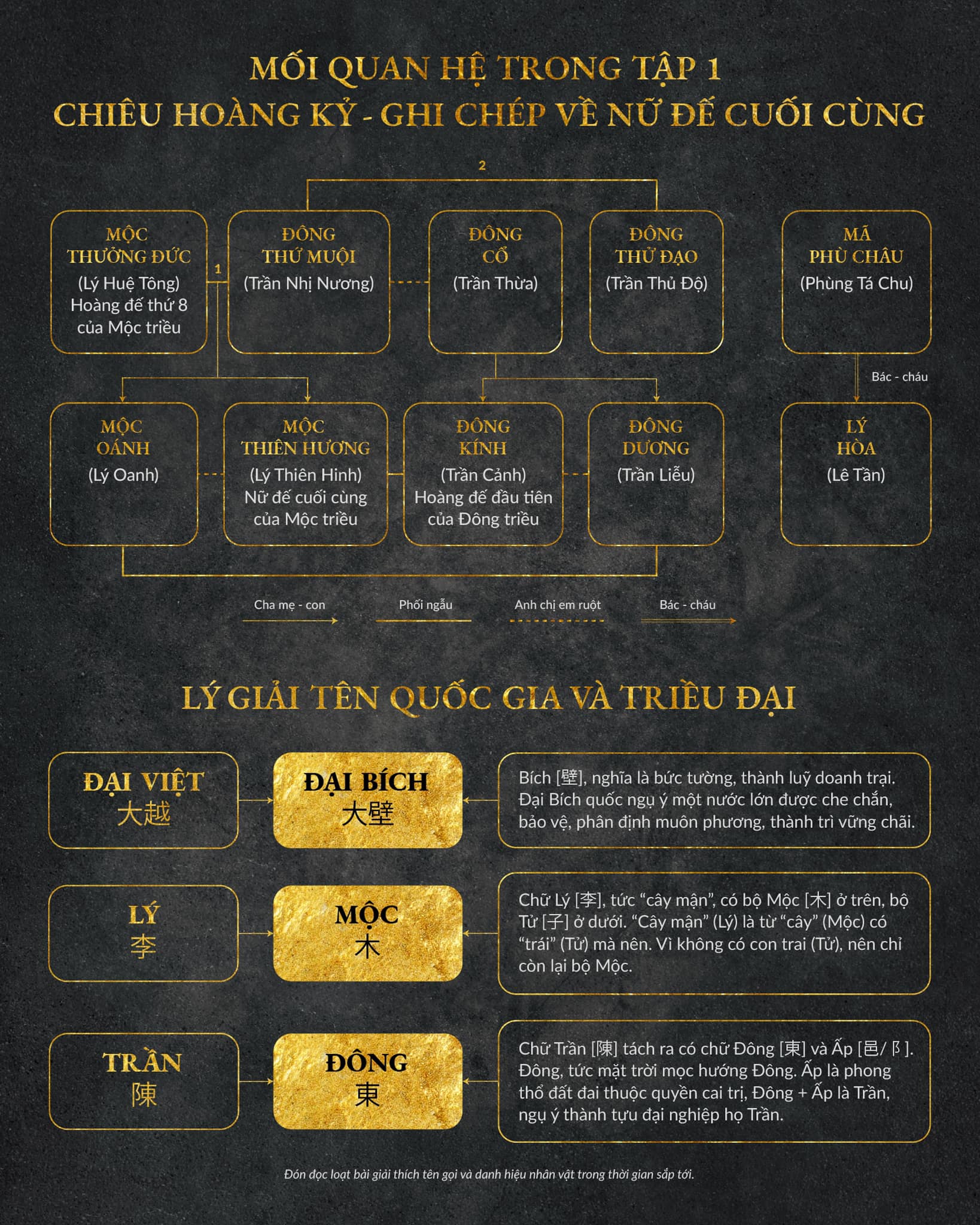 Không nằm ngoài mong đợi, bản thảo Chiêu Hoàng Kỷ đã hoàn thành và được thông báo sẽ xuất bản trong năm 2022. Một làn sóng hào hứng lan toả trong cộng đồng mến mộ truyện tranh Việt Nam. Sau sự khép lại của Cánh Hoa Trôi Giữa Hoàng Triều cùng năm, và những thất vọng đợi chờ bất tận của Long Thần Tướng kể từ tập 4 xuất bản năm 2019, người ta lại có cái để kỳ vọng ở một tác phẩm mà họ tin rằng sẽ đáng nhớ. Rất tiếc, điều đáng nhớ đầu tiên của Chiêu Hoàng Kỷ đã không đến từ chất lượng nội dung cũng như mỹ thuật, mà nó đến từ thông báo của ê-kíp sản xuất: thay đổi toàn bộ các tên riêng trong truyện. Nội dung có thể tóm tắt qua sơ đồ dưới đây: